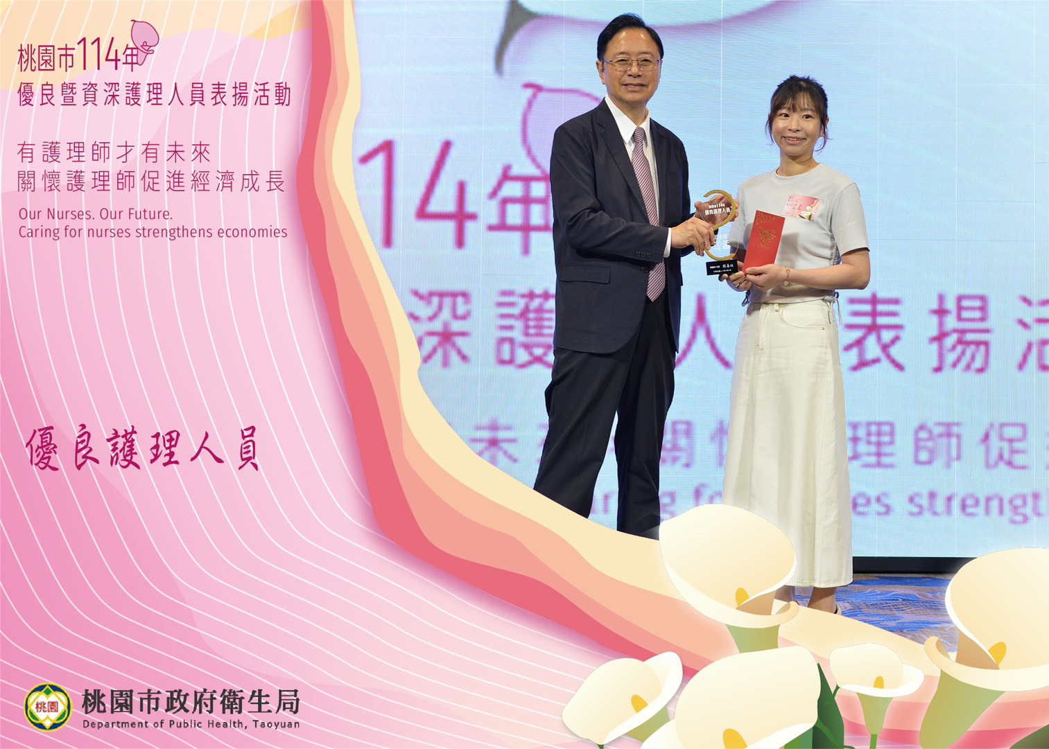 恭喜本院江孟 副護理長 榮獲桃園市114年度優良護理人員,為中美醫院取得優異的成績! 感謝桃園市政府衛生局的肯定與鼓勵,本院將再接再厲提供更完善及專業的醫療服務~