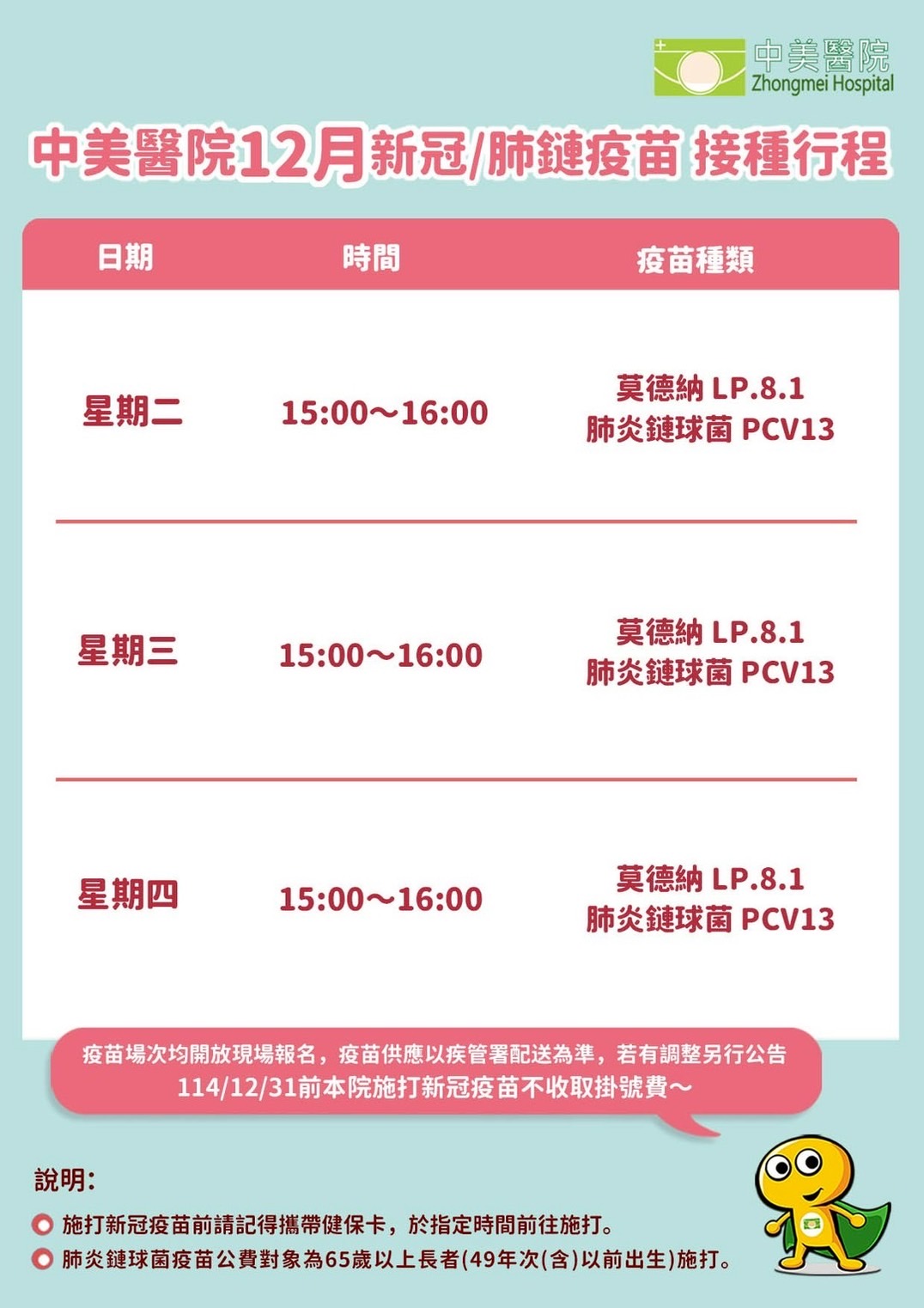 因應疫情升溫,本院新增疫苗專診請參閱~ 肺炎鏈球菌疫苗正式開打嘍,符合公費資格者歡迎前往施打~